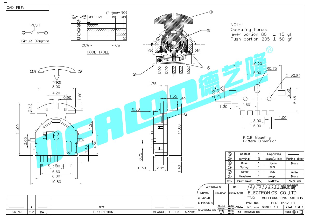 4-direction-20°-0°+20° Center push0.7mm±0.1mm