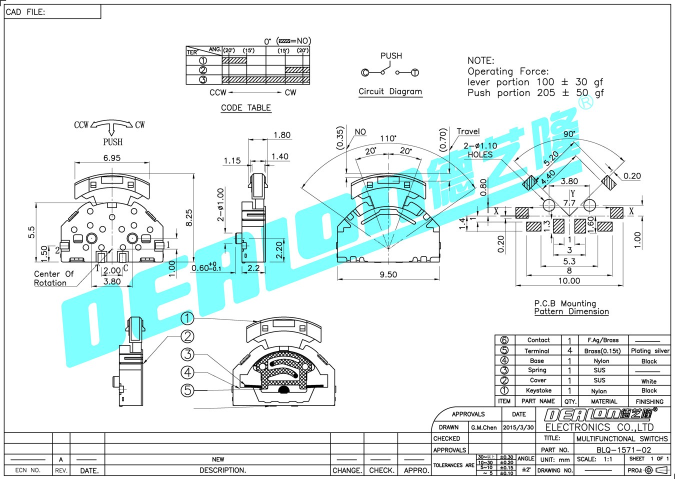 4-direction-20°-0°+20° Center push0.7mm±0.1mm