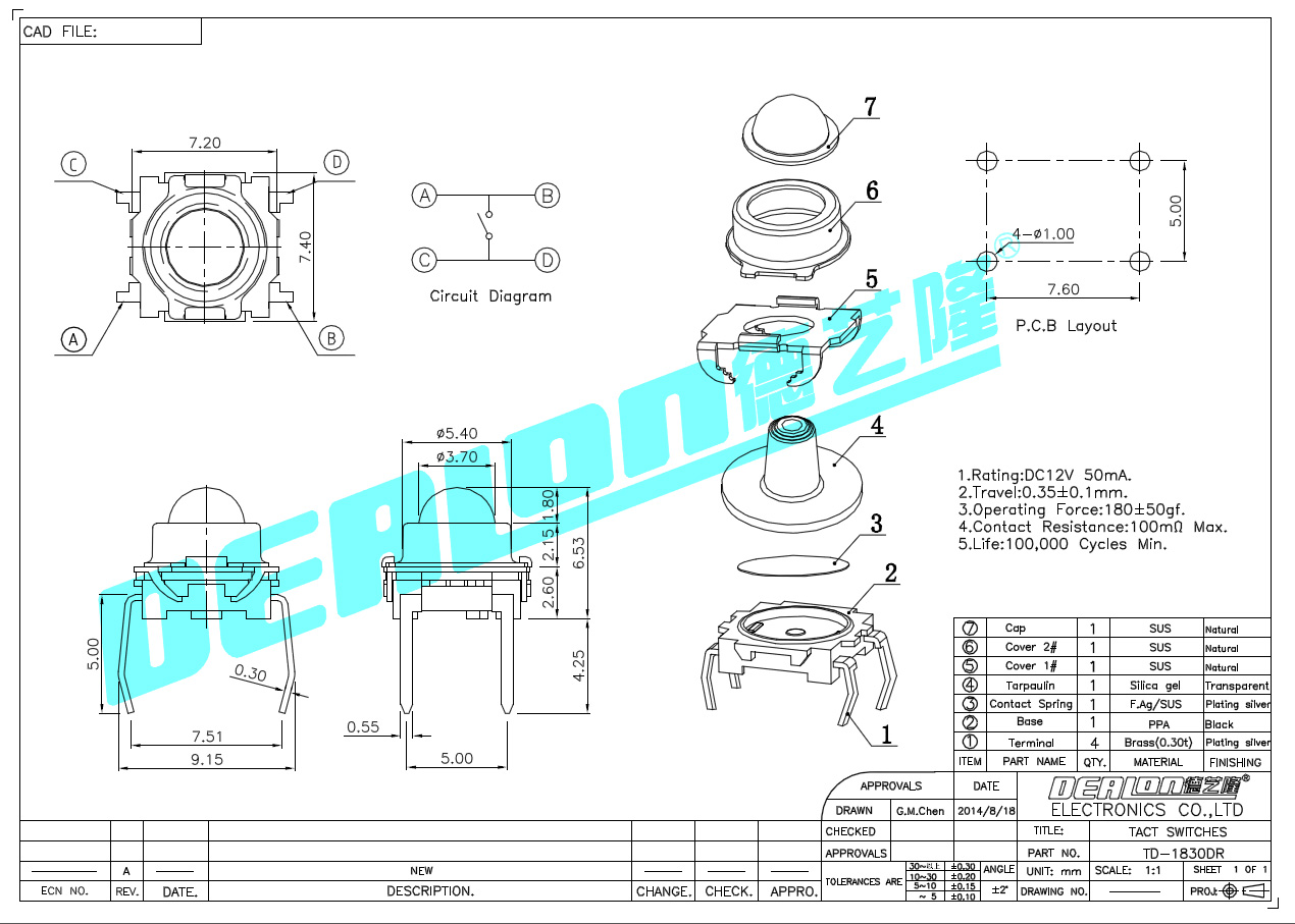 輕觸開(kāi)關(guān) TC-1830DR