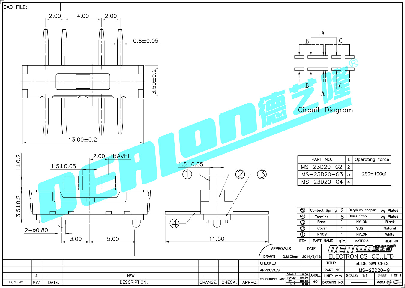 撥動開關 MS-23D20