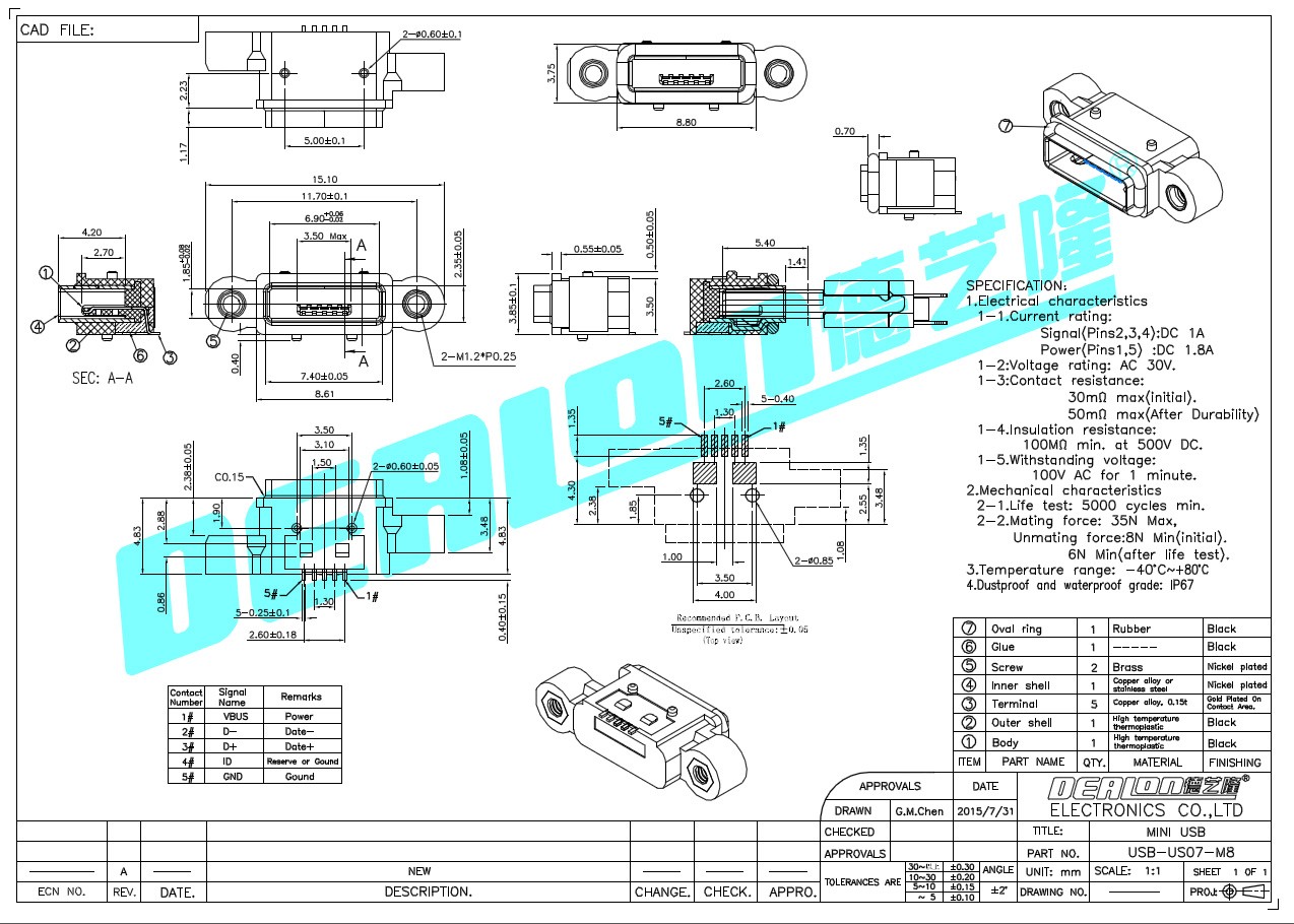 USB插座 USB-US07-M8